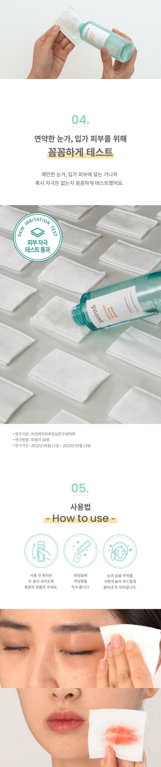3. Gently press on the eye & lip area to remove makeup.