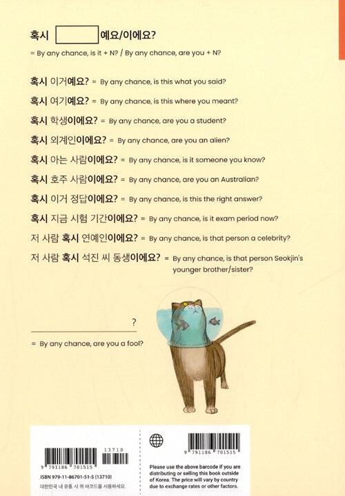 Here are 5 tips about how to make the most of 1100 Short & Useful Korean Phrases For Beginners!* Practice speaking the sentences repeatedly so that you can get familiar with each sentence pattern.* Sentences written in Korean are arranged on the left side of a page and those in English are on the right side. We recommend you cover one of the two sides with a piece of paper or your hand and test your understanding!* Study words with the index. In the index you can find all the vocabulary words used! In fact this book is also very useful to study words and practice making sentences with them.* Use the QR codes! There is a QR code for each pattern with which you can check the native Korean speaker’s pronunciation easily. You can of course download all the audio files at talktomeinkorean.com/audio.* The dorky 11th example sentence. Every 11th example sentence is a bonus one that will (hopefully) make you grin while studying. Look at the cute illustration attached to the 11th sentence! How could you not smile?