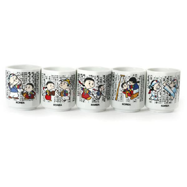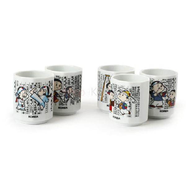 The “5-piece Soju Glass Set – Traditional Korean Games (Hunminjeongeum)” is a set of soju glasses featuring adorable characters inspired by Korean traditional games. Each glass is designed with a unique and charming representation of various folk games, capturing the essence of Korean culture.