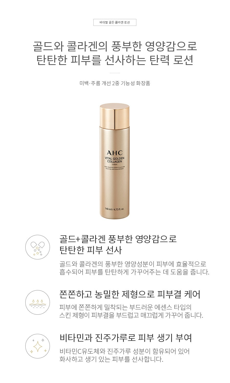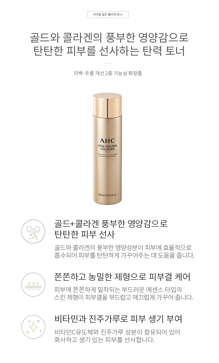 – Elastic toner that provides firm skin with rich nutrition of gold and collagen