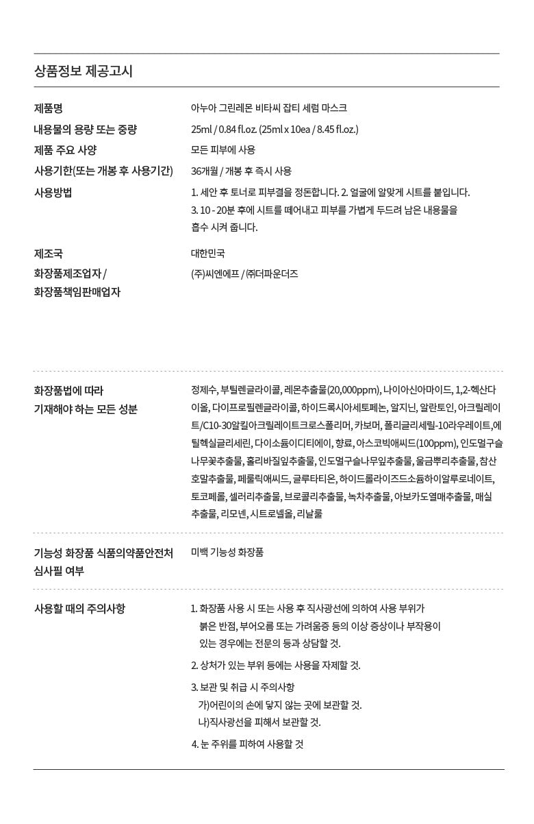 * Anua Green Lemon Vita C Blemish Serum Mask 25ml*10pack