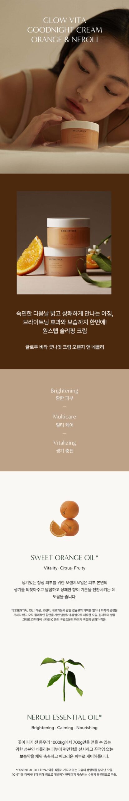 O temível creme noturno, AROMATICA Glow Vita Goodnight Cream, rejuvenesce a alma da pele. Aromas vibrantes de laranja dançam enquanto eleva meu espírito ao longo da noite.
