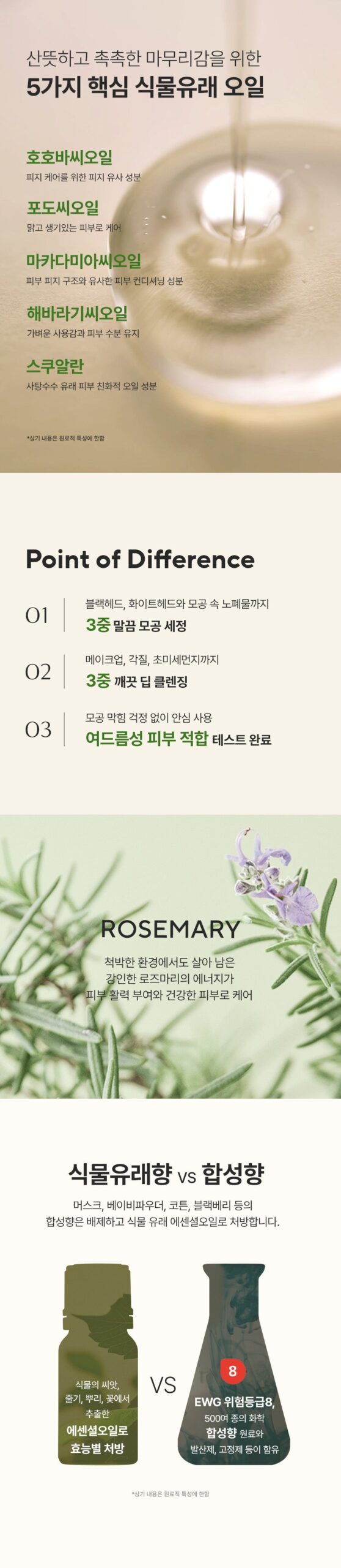 This product contains a blend of five essential plant-derived oils, chosen for their ability to nourish and maintain healthy skin: