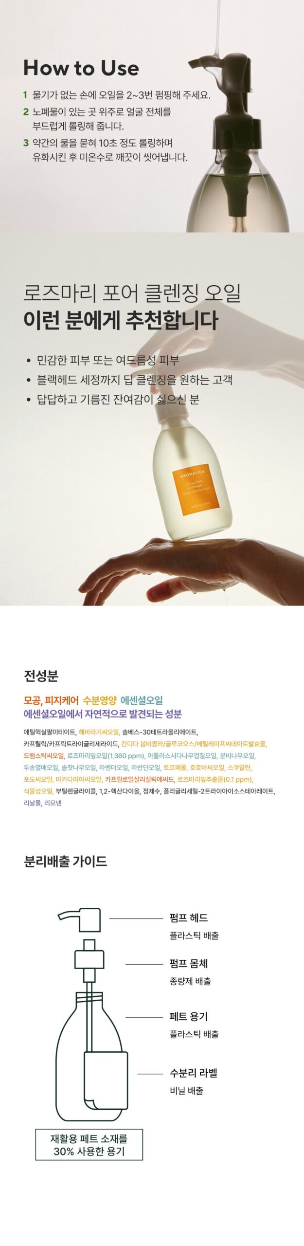 - Pump the oil 2-3 times onto dry hands.
