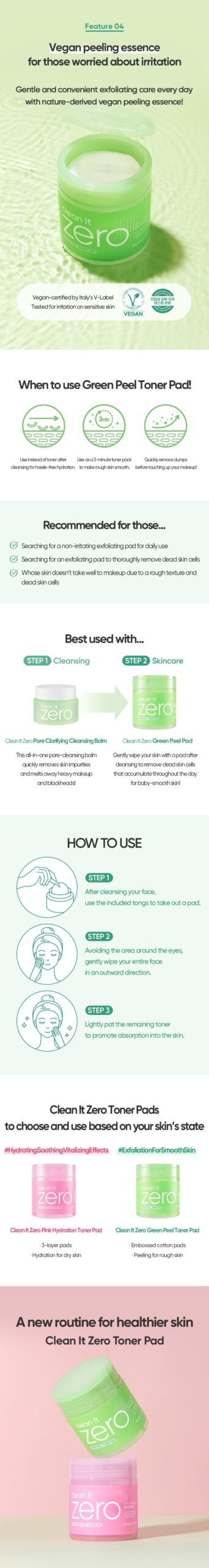 BANILA CO’s Green Peel Pad removes dead skin cells and revitalizes skin texture.