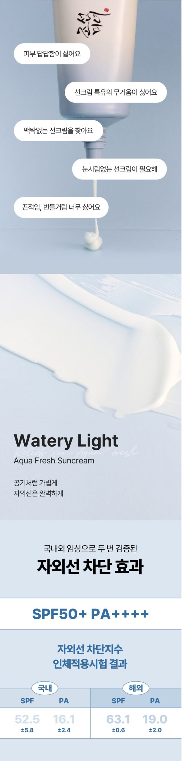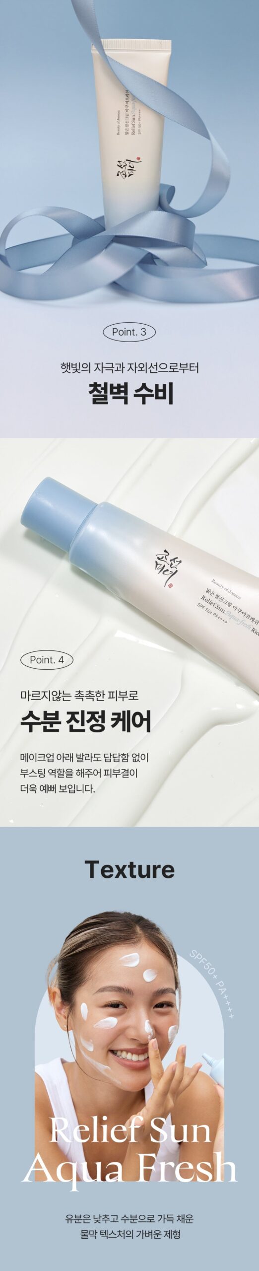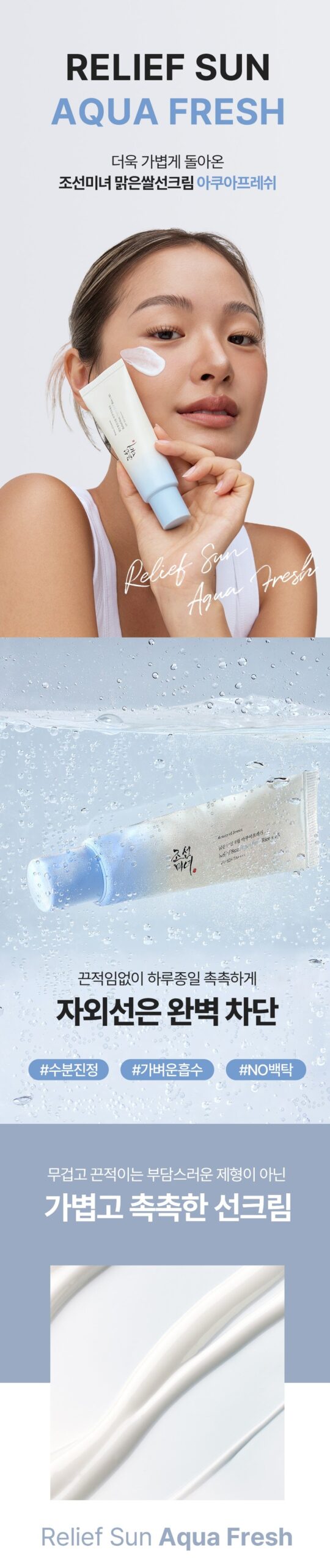 Discover the refreshed, lighter Beauty of Joseon Relief Sun Aqua Fresh – a sunscreen designed to hydrate all day while providing perfect sun protection without any sticky residue. This sunscreen’s lightweight, non-greasy formula offers a refreshing way to block UV rays, making it ideal for those who want comfortable, effective sun care.