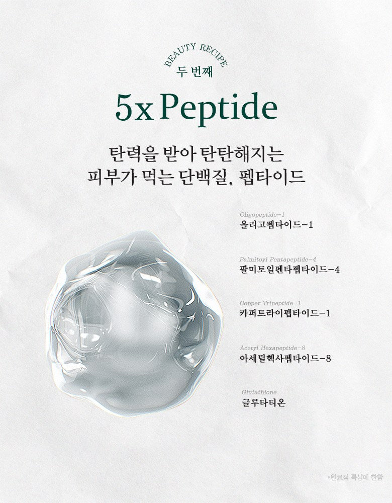 Purified Water, Caprylic/Capric Triglyceride, Cetyl Ethyl Texanoate, Squalane, Polyglyceryl-3 Buckwheat Glucose Distearate, Glycerip Glucoside, Cemil Alcohol, Polyglyceryl-10 Distearate, 1,2 -Hexanediol, glyceryl stearate, Myrdamnus flabellifolia leaf extract, Rose of Jericho extract, adenosine, steethyl alcohol, caprylyl glycol, myristyl alcohol, glucose, carbomer, arginine, biosaccharide Ride gum-1. Indian mulberry leaf extract, Indian mulberry flower extract, oligopeptide-1 (10,000ppb), palmitoylpentapeptide-4 (10,000ppb), caffetripeptide-1 (10,000ppb), acetaxapeptide-8 ( 10,000 ppb). Glutathione (10,000ppb), centella asiatica extract (10,000ppb), madecassoside (100ppb). Madecassic Acid (100 ppb), Asiaticoside (100 ppb), Asiatic Acid (100 ppb). Coliglycerim-10 Laurate
