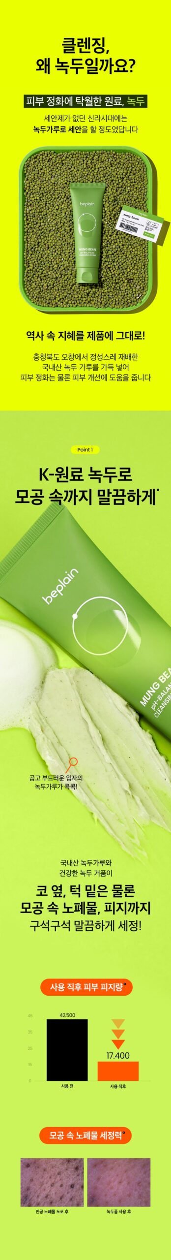 - K-Ingredient Mung Beans: Excellently cleans impurities and sebum from pores, especially around the nose and under the chin.