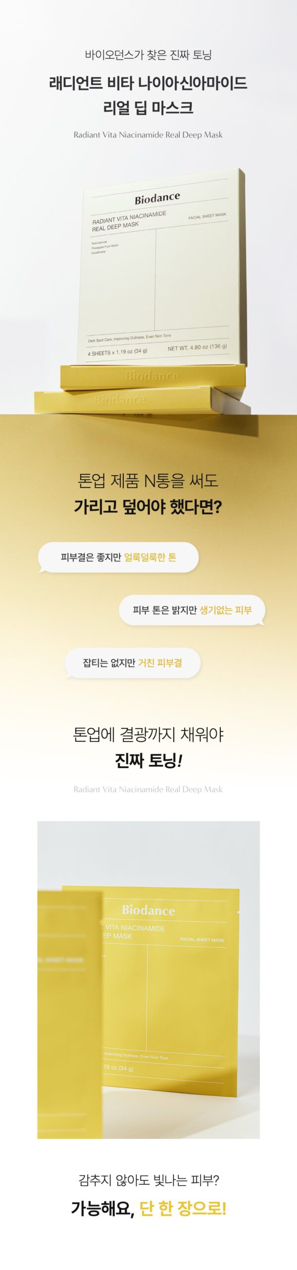 Transform your skincare routine with Biodance Radiant Vita Niacinamide Real Deep Mask – your all-in-one solution for radiant, hydrated, and flawless skin!