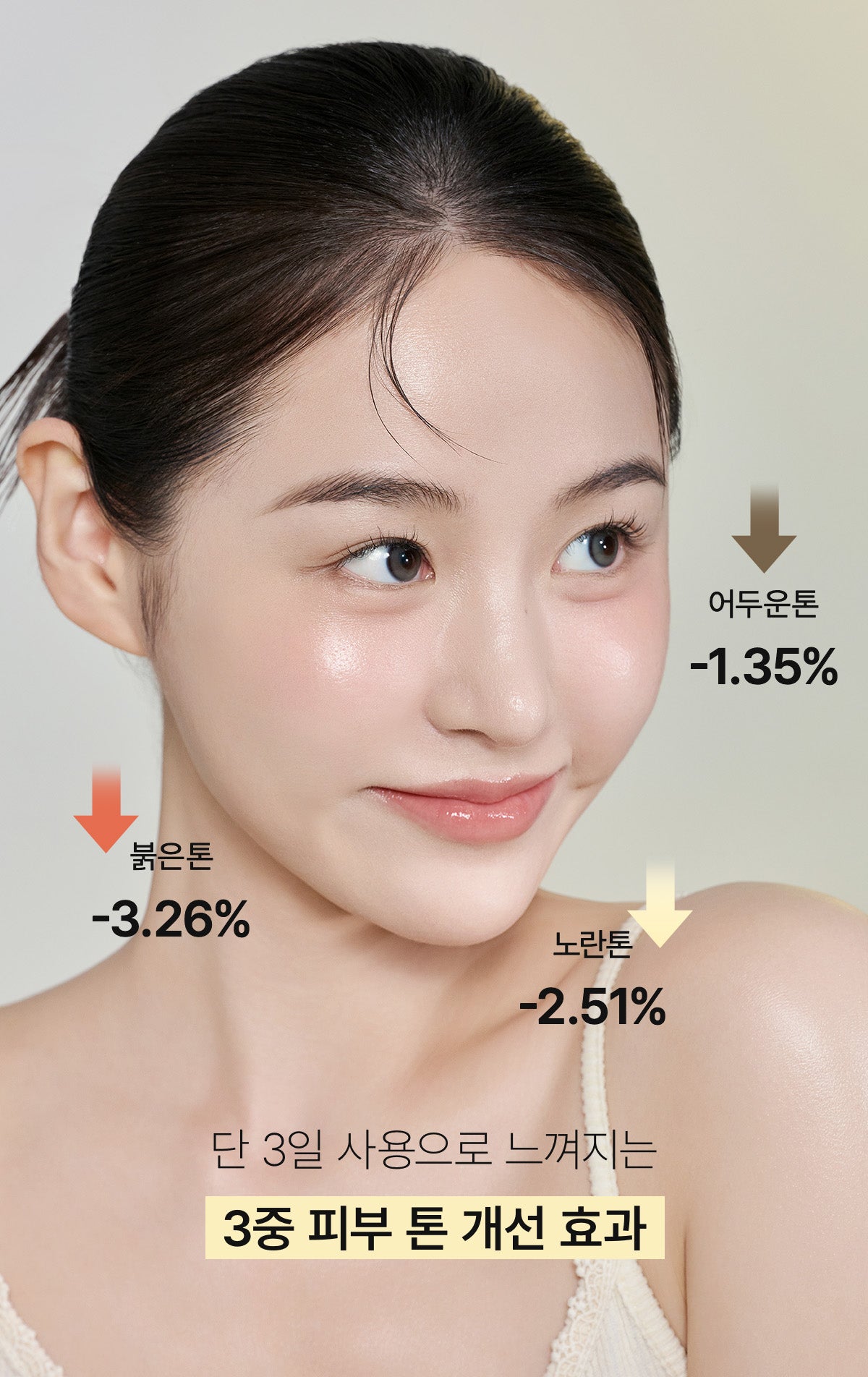 Effectively minimizes hyperpigmentation and redness, delivering an even and luminous skin tone.