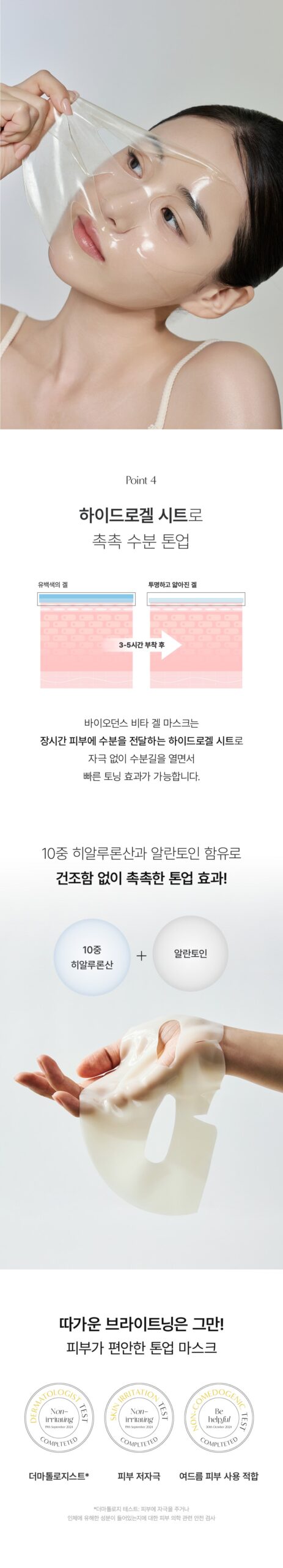 - The bio-dense hydrogel mask deeply moisturizes the skin while toning it.