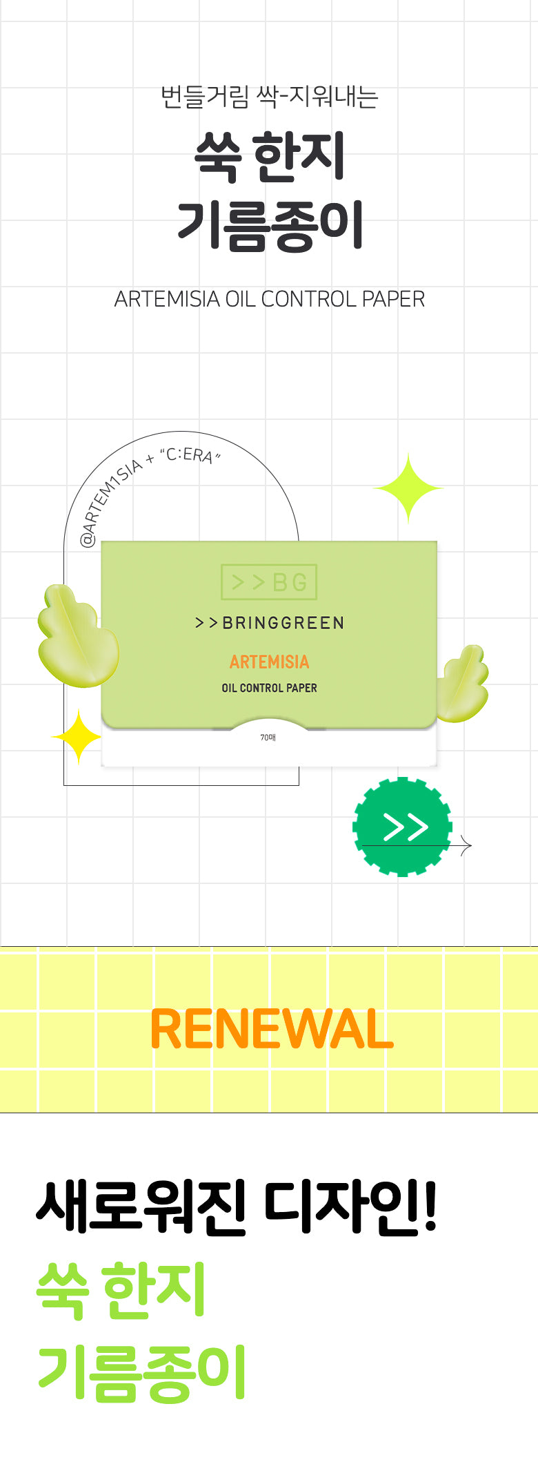 Discover the rejuvenating power of BRINGGREEN Artemisia Oil Control Paper, your ultimate solution for a shine-free, refreshed complexion. Crafted with a passion for purity and effectiveness, our oil control paper is infused with the essence of Korean Artemisia powder, known for its moisturizing benefits and unparalleled ability to absorb excess sebum and oil.