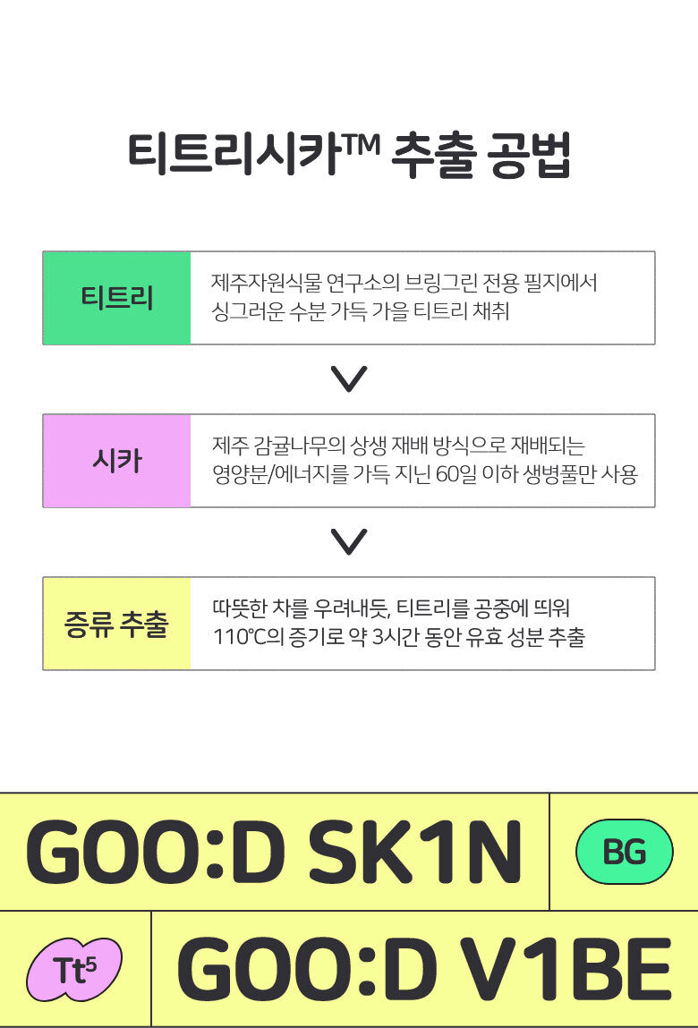 * Tea tree ingredients are supplied from the exclusive land of the Jeju Plant Resources Research Institute in the fall, boasting the highest quality.