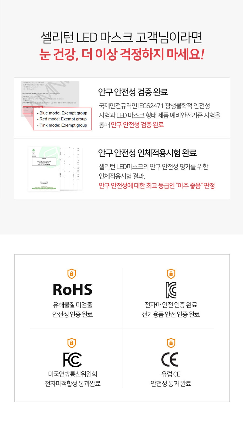 - Meets all LED mask safety standards established by South Korea’s Ministry of Trade, Industry, and Energy (MOTIE) and the Korea Food and Drug Administration (KFDA).