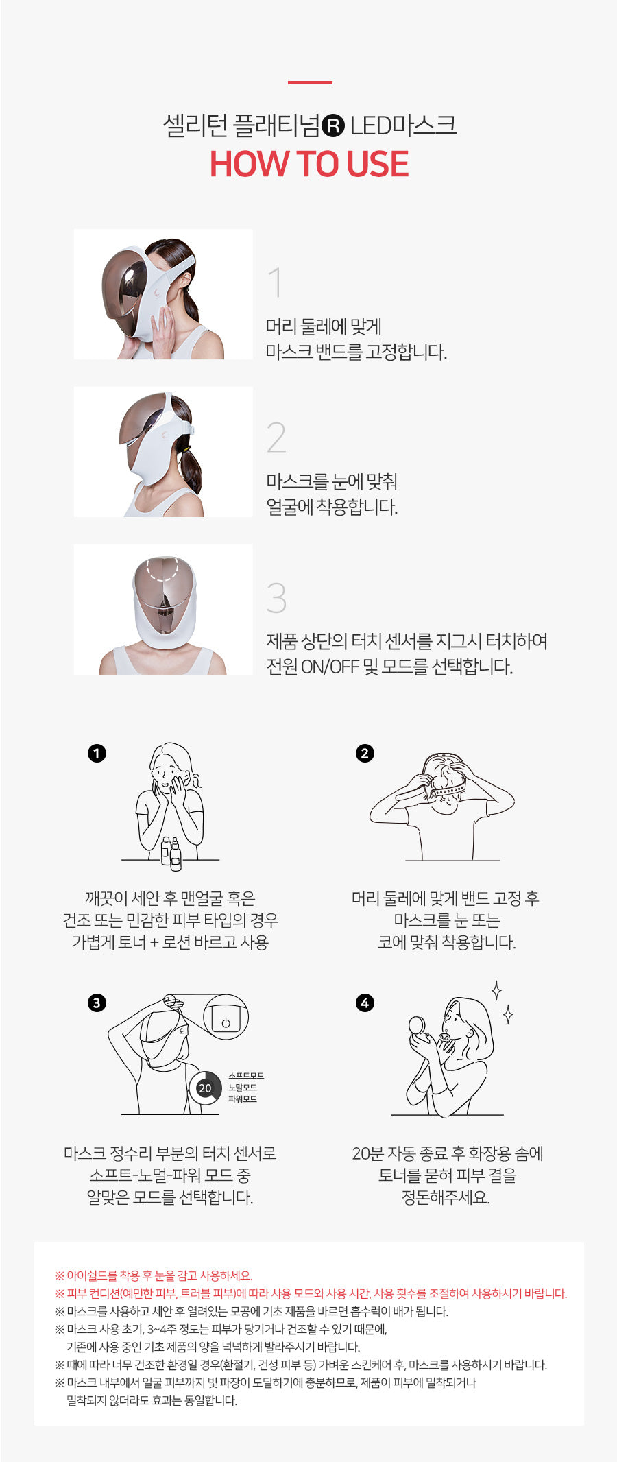 - If you’ve had plastic surgery or skin treatments, contact CELL RETURN Customer Support (+82-1688-1026) before use.