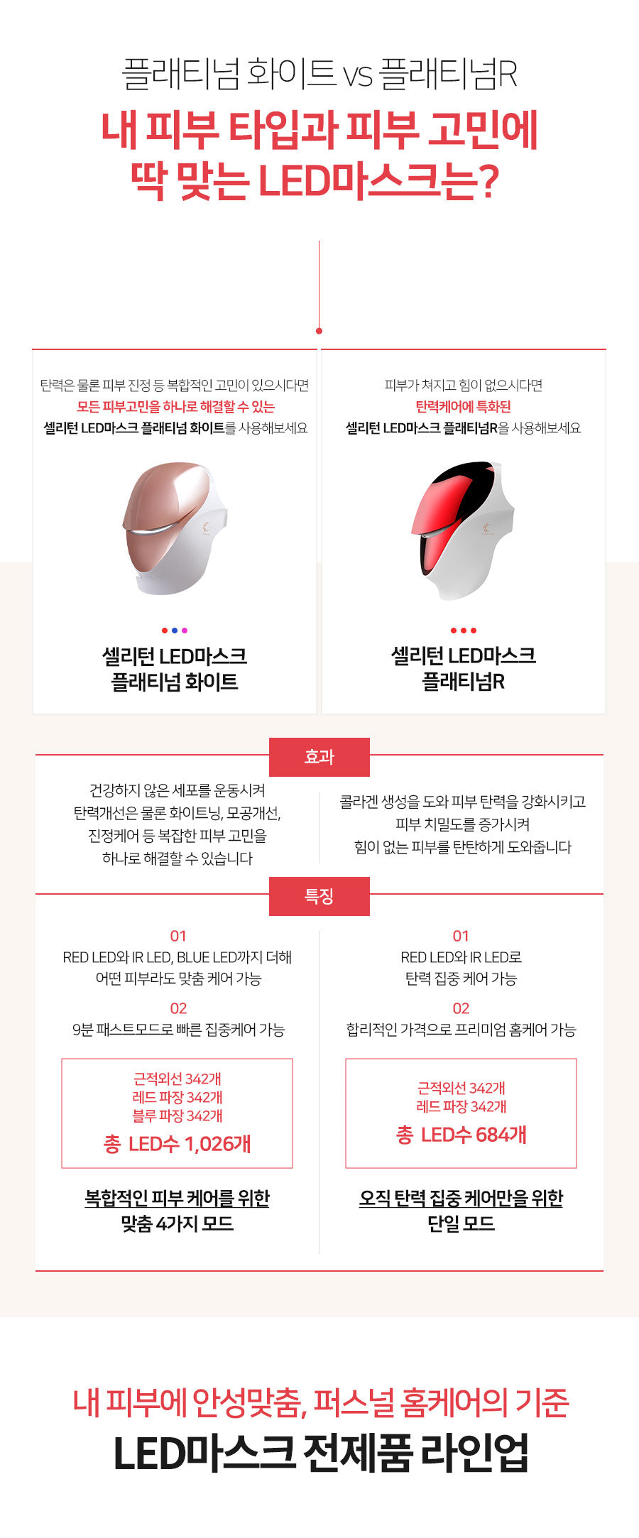 For those looking for intensive anti-aging and firmness enhancement, the CELL RETURN LED Mask Platinum R is the perfect choice. If you need comprehensive skincare, including whitening, pore care, and soothing, go for the Platinum White version.