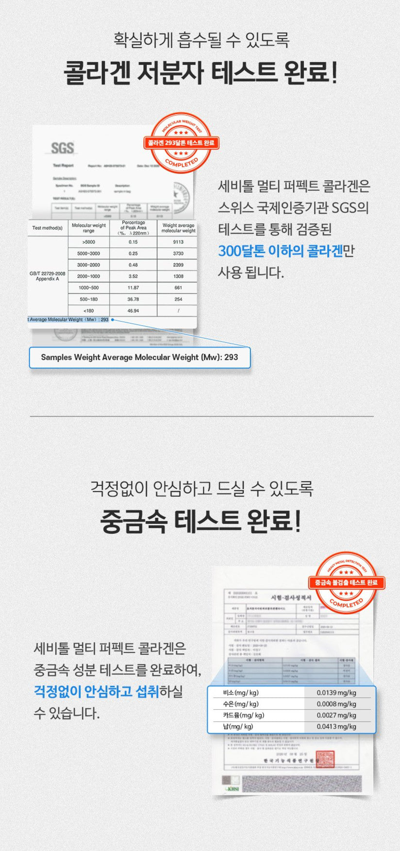 Sebitol Multi Perfect Collagen has completed the heavy metal component test, so you can consume it without worry.