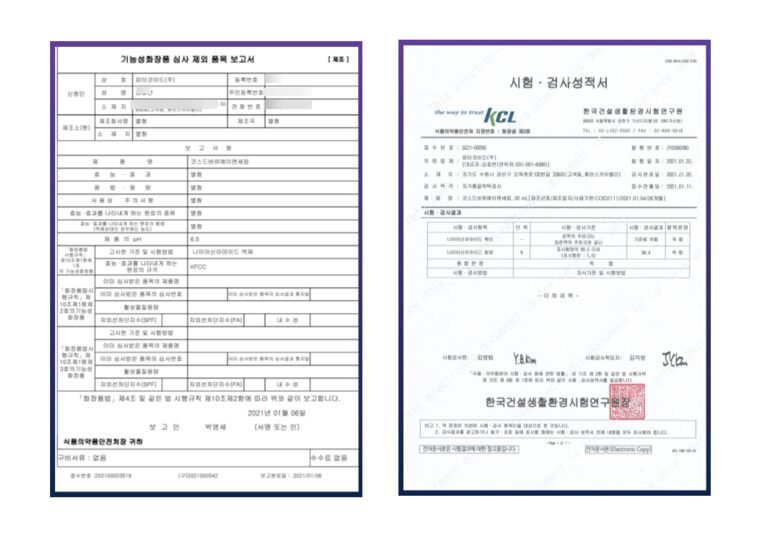 Ministry of Food and Drug Safety report and test/inspection report