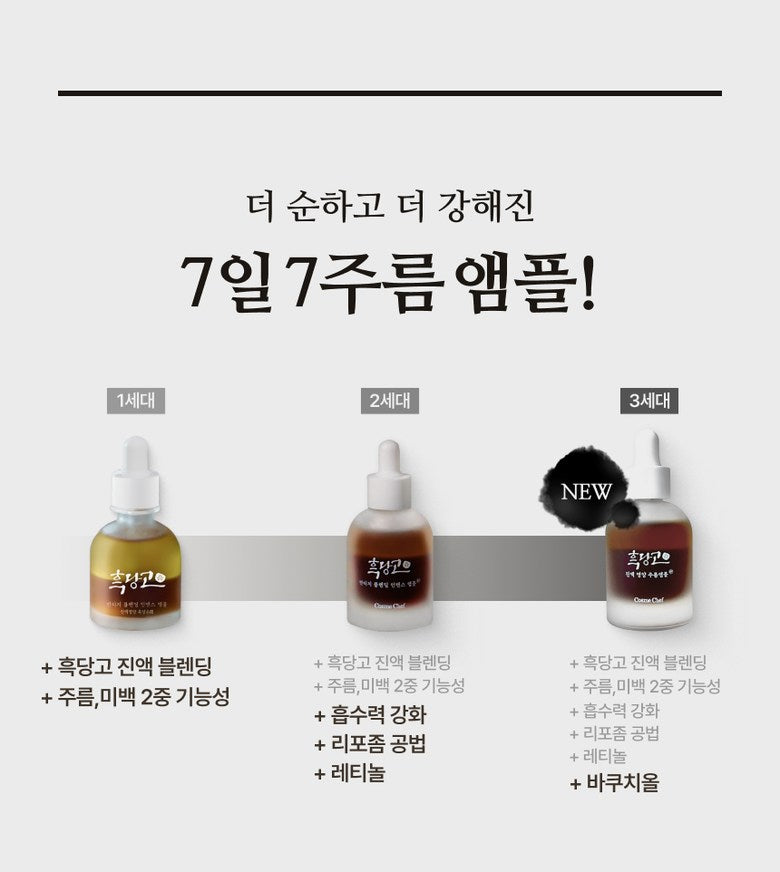 - Utilizing a low-temperature decompression method, the Heukdango ingredients are boiled down to extract all the beneficial components effectively, enhancing the ampoule’s ability to soften wrinkles.