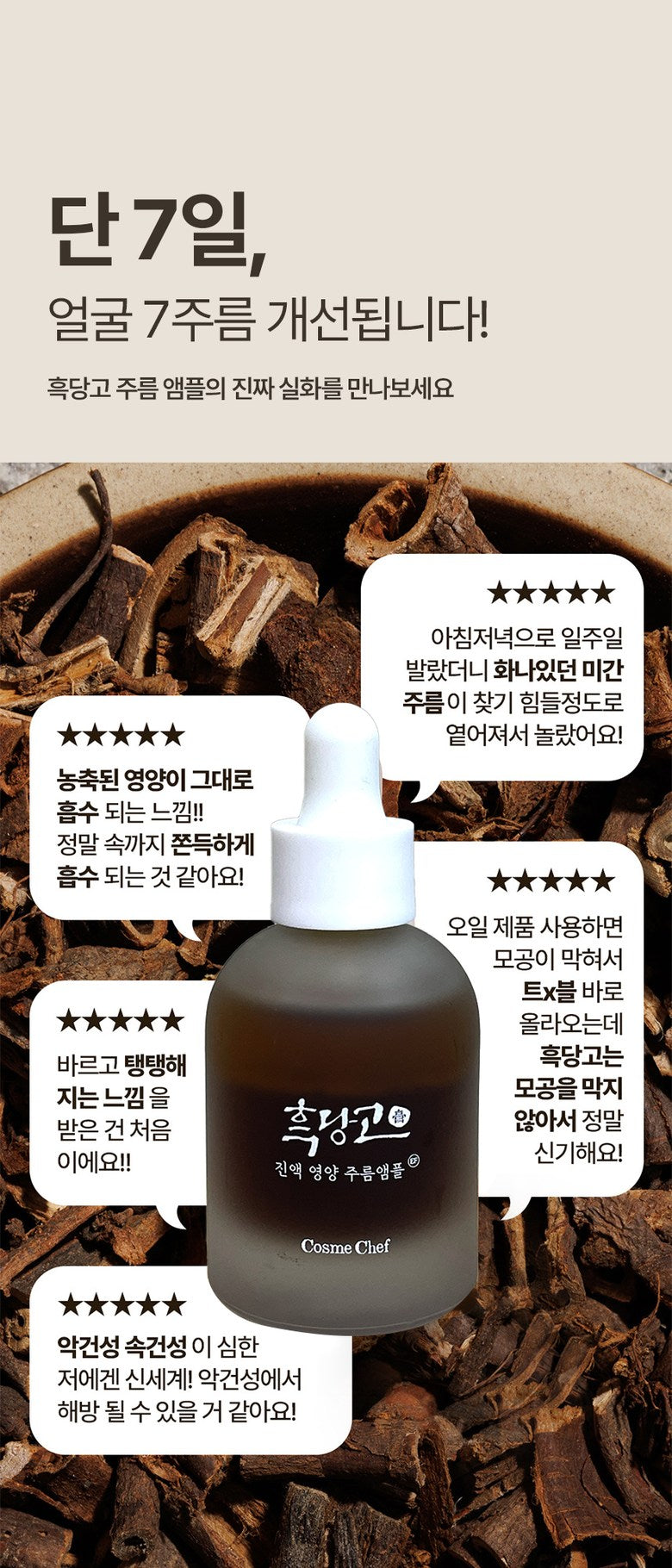 Witness visible wrinkle softening and enhanced skin elasticity within just 7 days with Cosme Chef’s Heukdango Vintage Herb Wrinkle Ampoule. Enjoy a more youthful tomorrow with the ancient wisdom and modern technology packed in every drop.