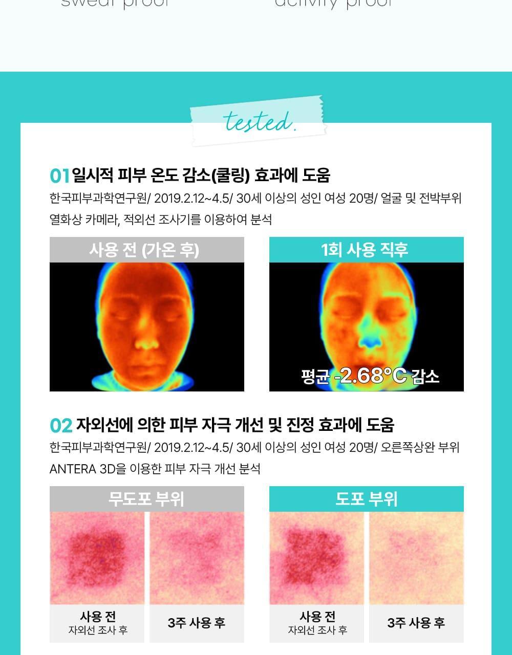 - Instant Cooling: Decreases skin temperature by -2.68ºC upon application.