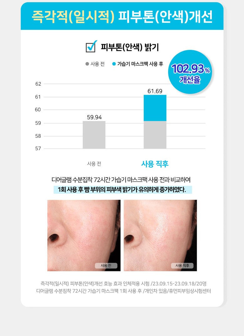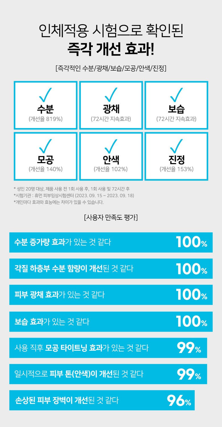 Experience immediate improvements in moisture, glow, hydration, pores, complexion, and soothing effects confirmed through human application tests.