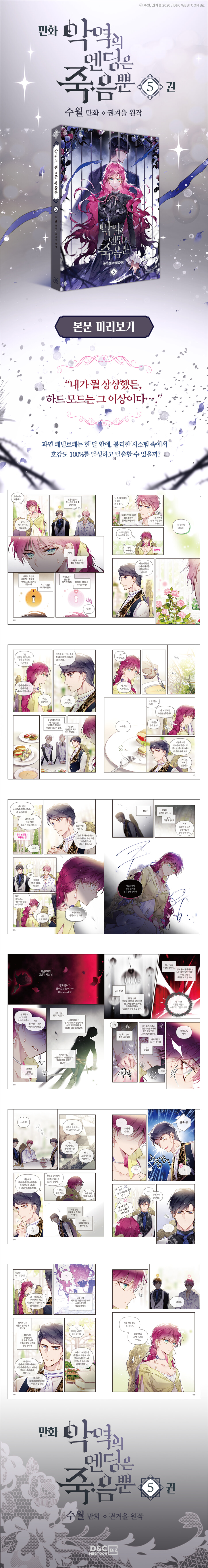 Death is the Only Ending for the Villainess is a Korean webtoon about a young woman named Penelope Eckhart, who was born as an illegitimate child of a wealthy family and treated poorly by her relatives. One day, she finds herself reincarnated as the villainess in a dating simulation game. Knowing that the only way to survive is to successfully capture the hearts of one of the five male lead characters, Penelope embarks on a journey to change her fate. However, things are not as simple as they seem, as the real heroine of the game is set to return soon, and if Penelope fails to capture one of the male leads, her only fate will be death. As she navigates through the game’s world, Penelope must make difficult decisions and face many challenges. But with her intelligence, wit, and determination, she sets out to rewrite her destiny and escape the cruel fate that awaits her.