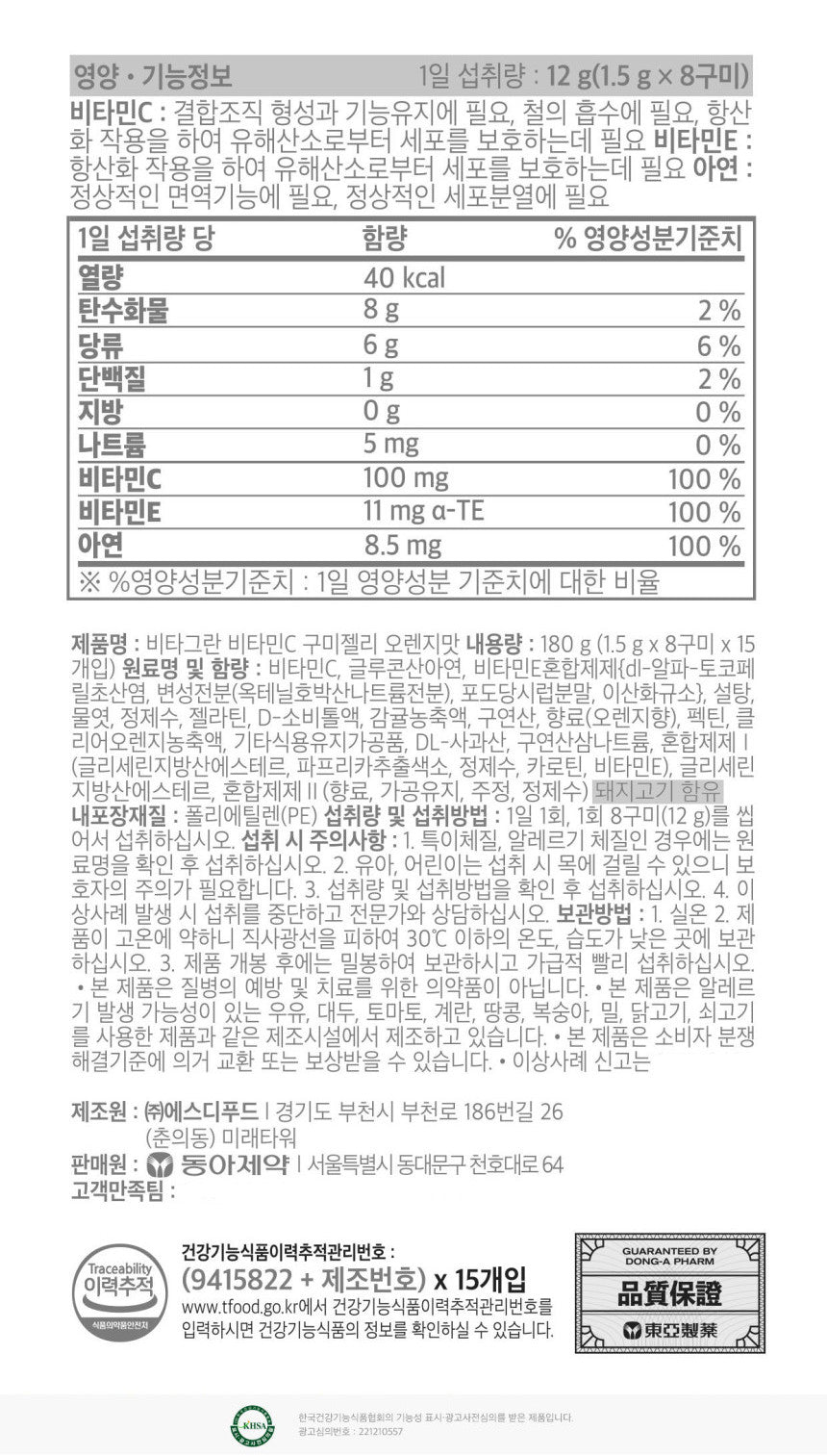 I recently started taking the DONG-A FARM VitaGran Vitamin C Gummy Jelly, and I’ve been pleasantly surprised by how much I enjoy these. Each gummy contains 100% of my daily value for both Vitamin C and E along with zinc, which is perfect for supporting my immune system. The orange flavor makes it a delightful treat rather than another boring supplement; I look forward to them every morning! Since incorporating these gummies into my routine, I’ve felt more energetic and haven’t caught any colds during this season.