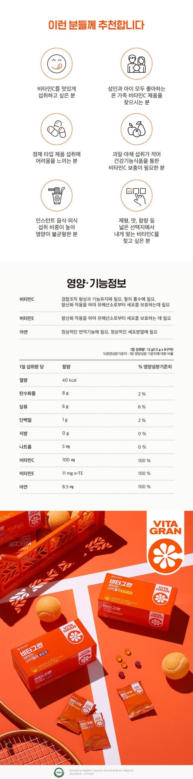 I’ve been using DONG-A FARM VitaGran Vitamin C Gummy Jelly for a month, and it’s become part of my daily routine. Each gummy contains 100% of the daily nutrient reference value for Vitamin C, which I appreciate because it supports my immune health. The added Vitamin E and Zinc provide excellent antioxidant protection as well. The orange flavor is pleasant and refreshing, making it easy to take without any fuss like pills or capsules. I’ve noticed fewer colds this season—definitely feels like it’s working!