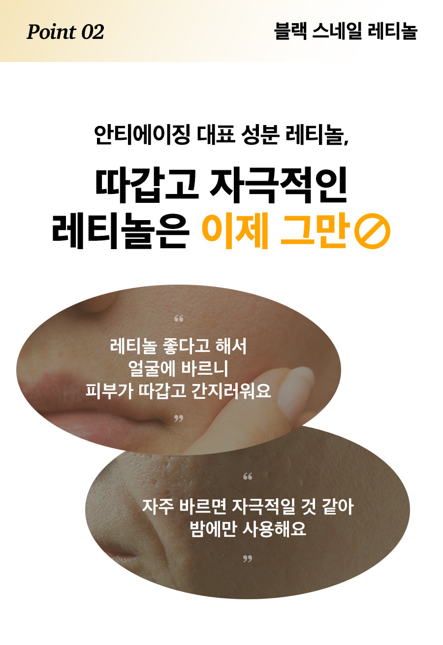 Our Black Snail Retinol Ampoule addresses 12 different signs of skin aging within just 4 weeks of use, turning back the clock to reveal skin that looks 6 years younger. From boosting moisture and elasticity to improving skin tone and reducing the appearance of aging, our blend of antioxidants including Black Snail extract, Retinol, and ACTIVE MUCIN works synergistically to offer unparalleled anti-aging effects. Notice a significant improvement in the 3 major wrinkle areas: eyes, smile lines, and forehead.