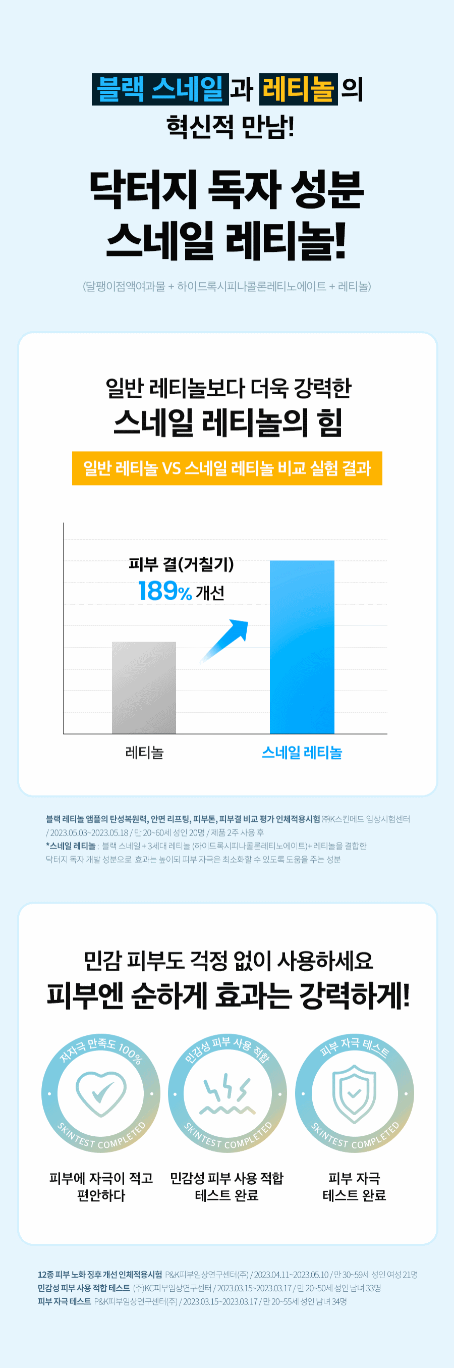 Achieve unmatched pore elasticity from the very first application with our Black Snail Retinol Ampoule. Experience a triple-action improvement on your skin’s pore area, volume, and depth, thanks to our exclusive ACTIVE MUCIN formulation. This potent ingredient, superior to regular mucin, employs a double liposome method for stable delivery of actives and peptide mucin to maximize efficacy. Embrace the sensation of ingredients being deeply absorbed into your skin, leaving you with 100% satisfaction in pore elasticity.