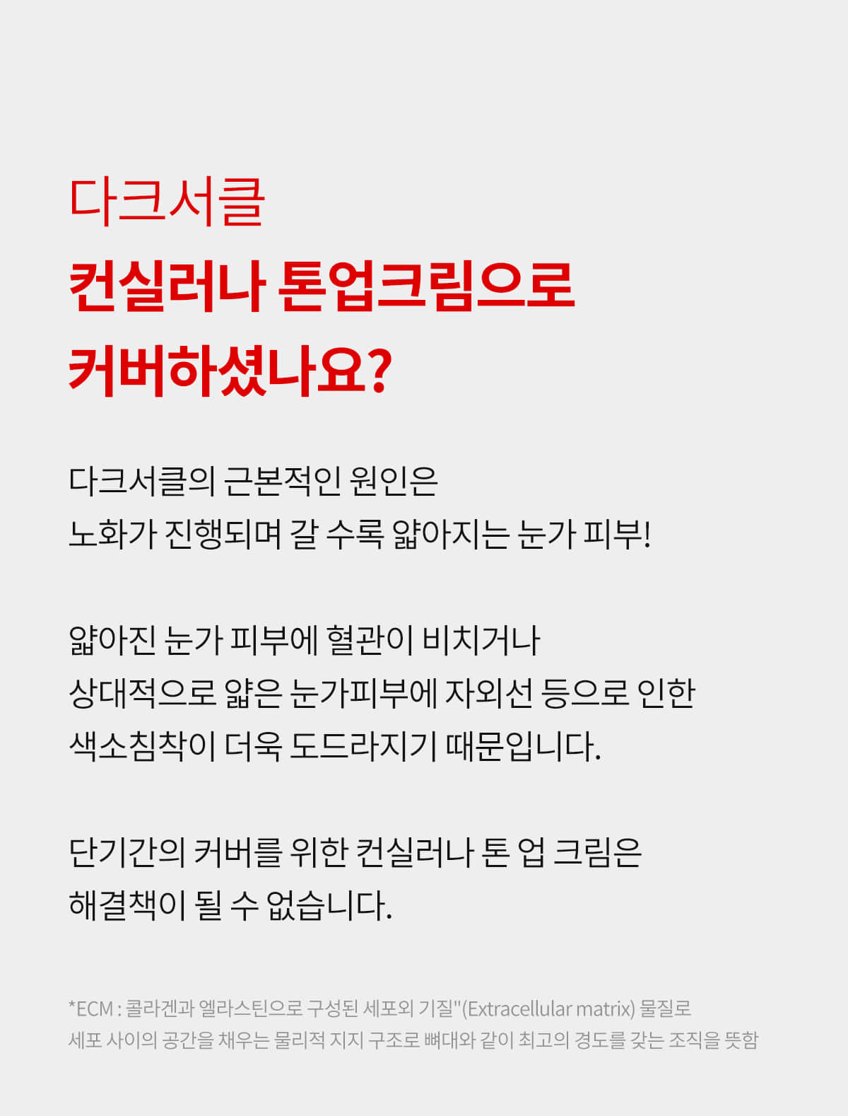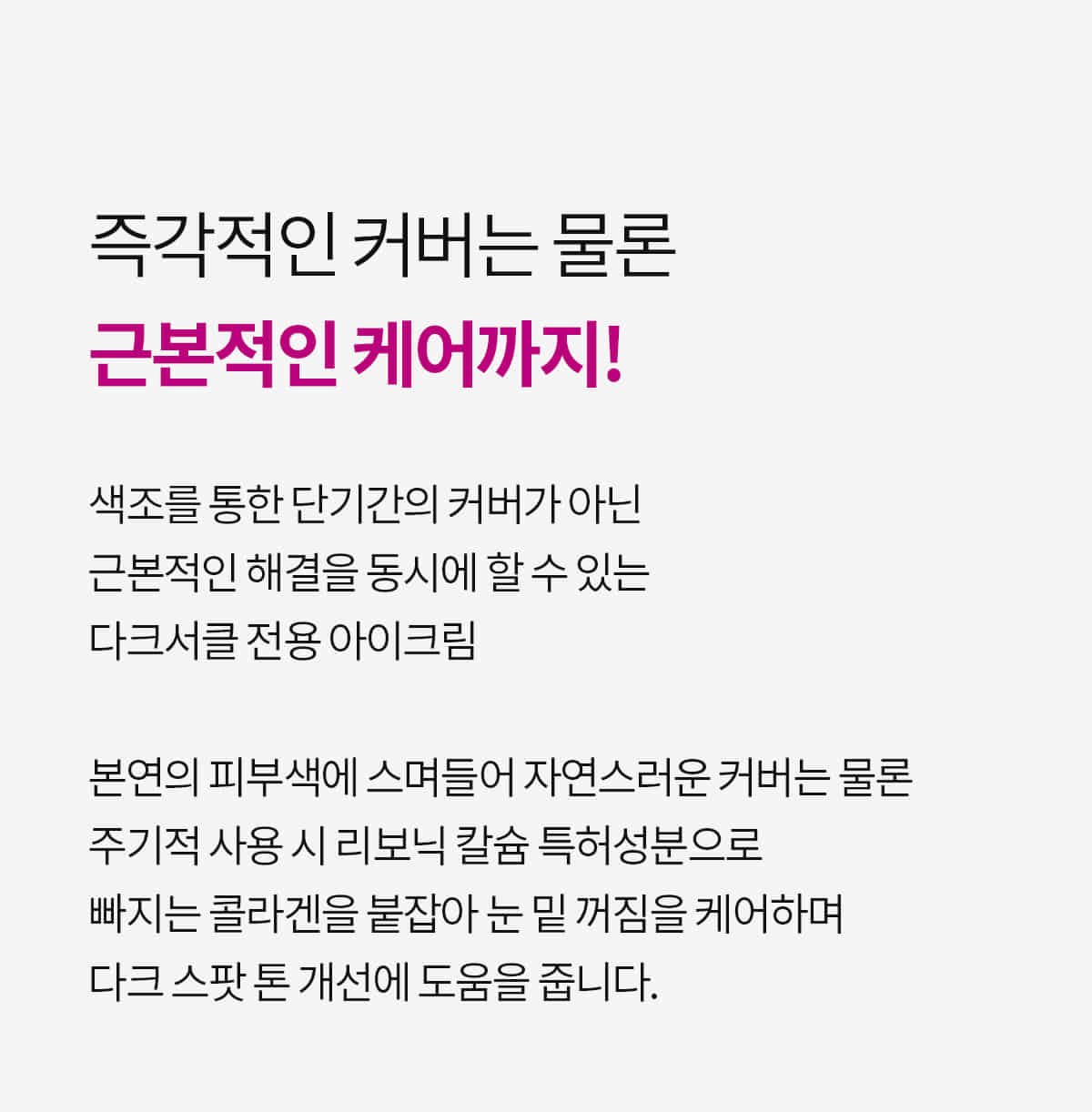The primary cause of dark circles is the thinning of the skin around the eyes due to aging. Unlike concealers or tone-up creams that provide only short-term coverage, this innovative eye cream tackles the root cause. With regular use, it reinforces the under-eye structure by capturing collagen, improving elasticity, and brightening dark spots.
