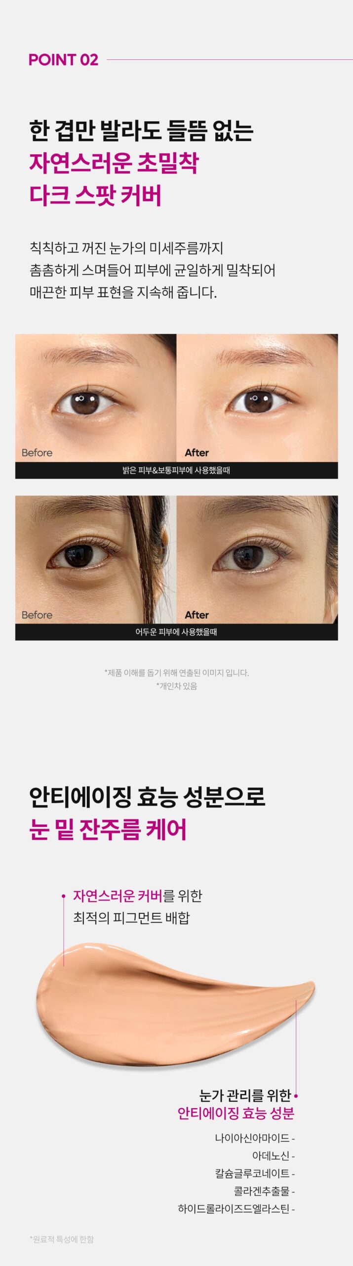 - Brightened and smooth under-eye area.
