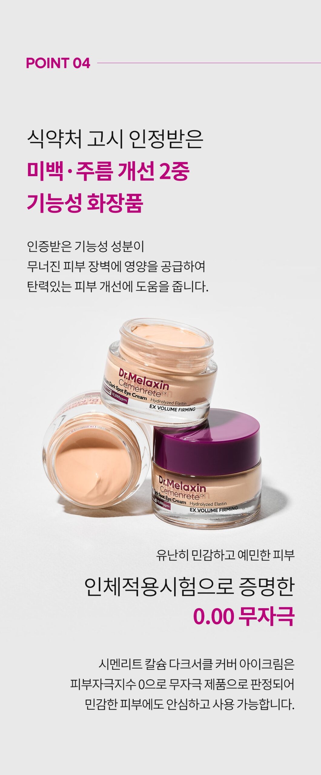 - Boosts skin calcium concentration with a unique mechanism using almond enzyme active solution, improving the structure of collagen and elastin under the eyes to combat sagging and discoloration.