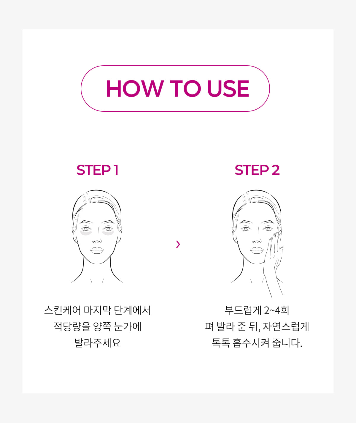 - At the last step of your skincare routine, apply a small amount to the under-eye area.
