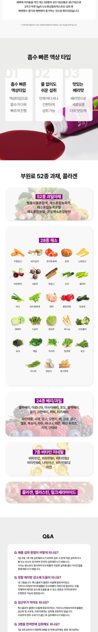 – **Sub-ingredients**: The product is enriched with 52 types of fruits and vegetables, 7 types of vitamins and minerals, and additional beneficial ingredients like Collagen, Elastin, and Milk Ceramide.