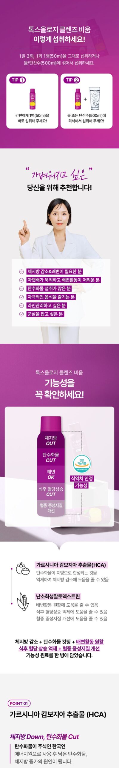 Toxology Cleanse Vium is a health functional food designed to control carbohydrate consumption and reduce body fat. It’s made with key ingredients like Garcinia Cambogia Extract (HCA) and Indigestible Maltodextrin to promote a healthier body and improved digestion. This product is approved by the Ministry of Food and Drug Safety and meets the Good Health Functional Food Manufacturing Standard (GMP).