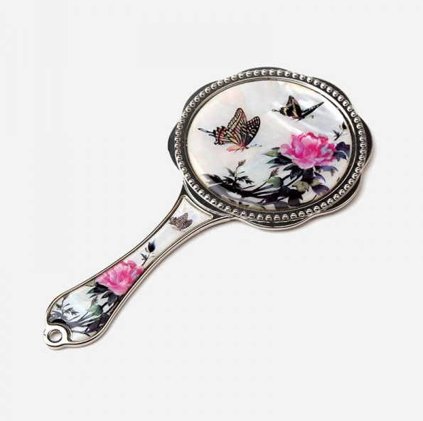 * Hand Mirror With Beautiful Mother Of Pearl Handle, Mother Of Pearl Handle Mirror – Damhwa Butterfly / Made In Korea