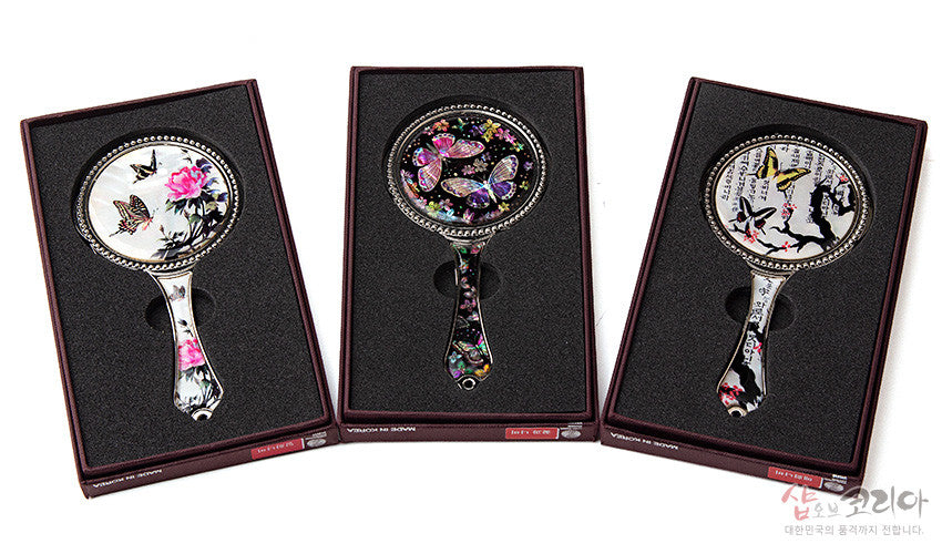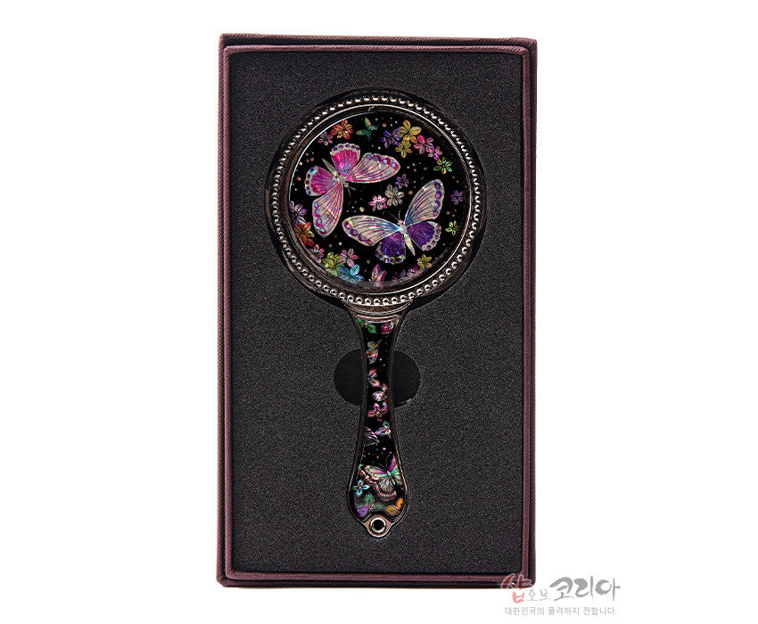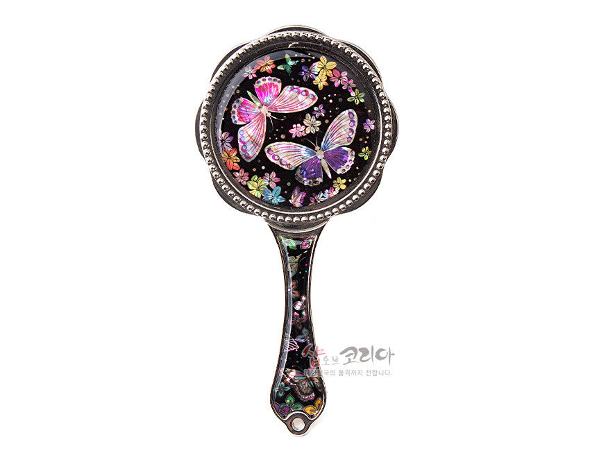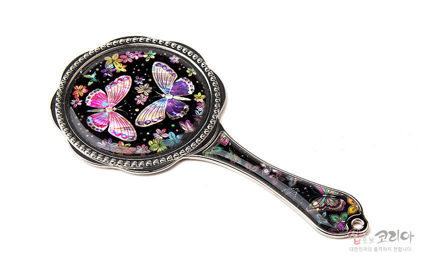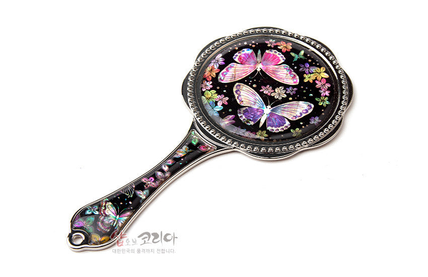 * Hand Mirror With Beautiful Mother Of Pearl Handle, Mother Of Pearl Handle Mirror – Flower & Butterfly / Made In Korea