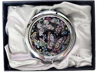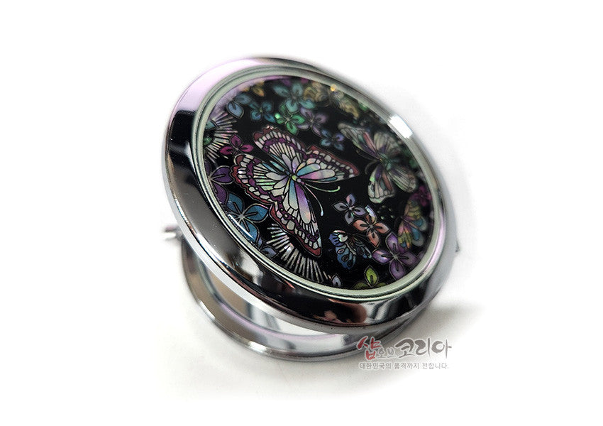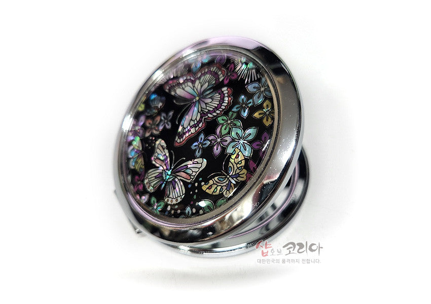 * Harmony Of Korean Style & Natural Mother Of Pearl Pressed Mother Of Pearl Hand Mirror – Flowers & Butterflies / Made In Korea