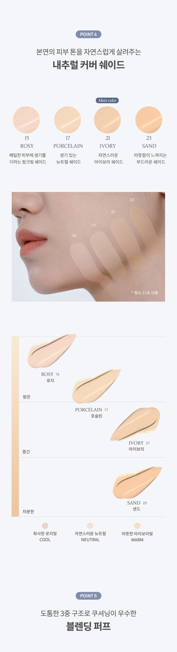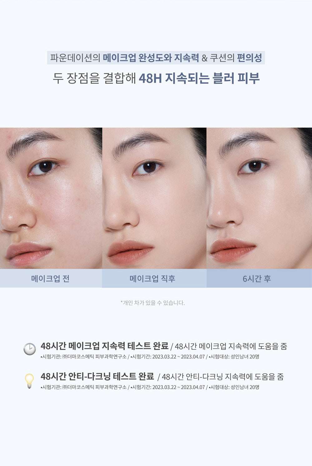 - Lightweight and Breathable: Designed for all skin types, this cushion foundation ensures a comfortable, breathable wear, effectively covering blemishes while maintaining a light, makeup-free feel.