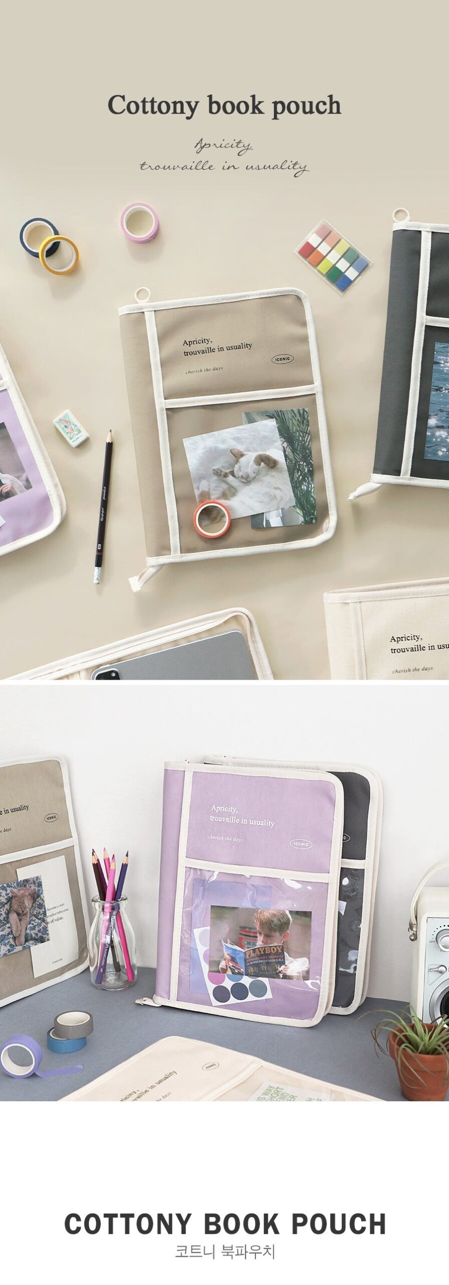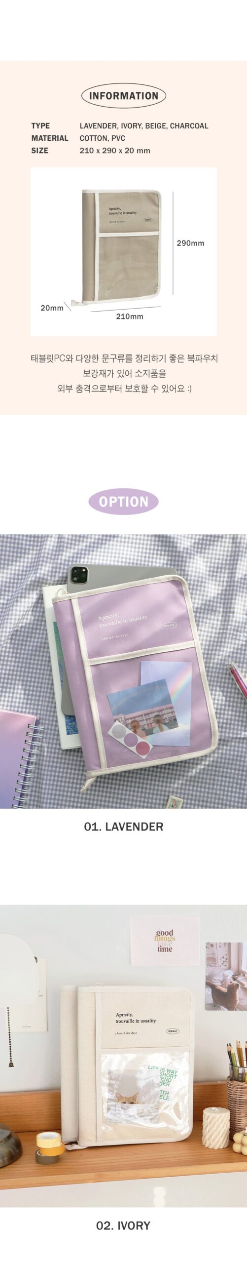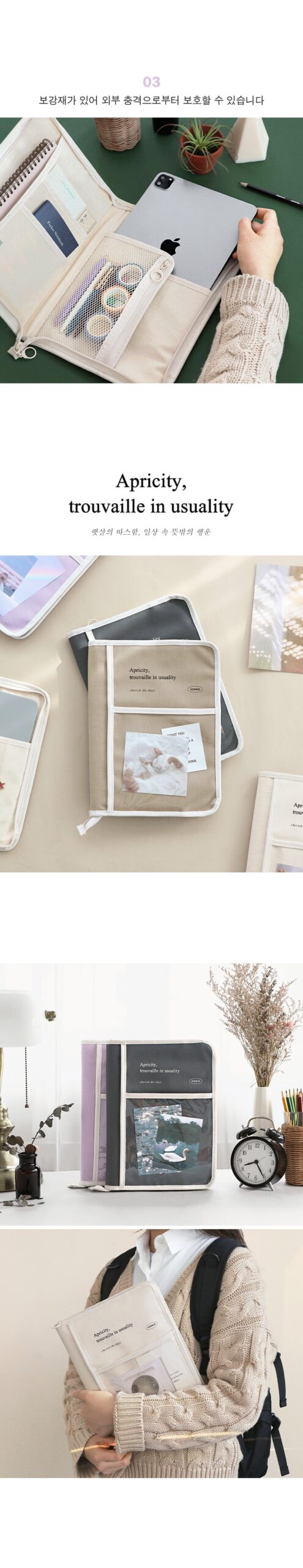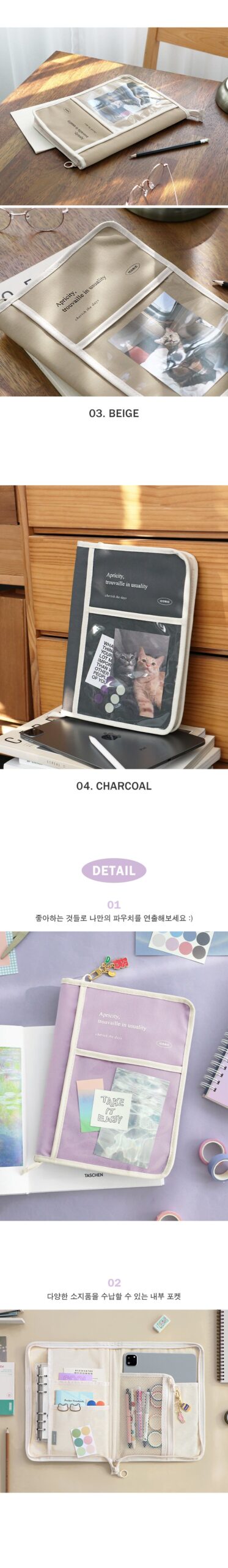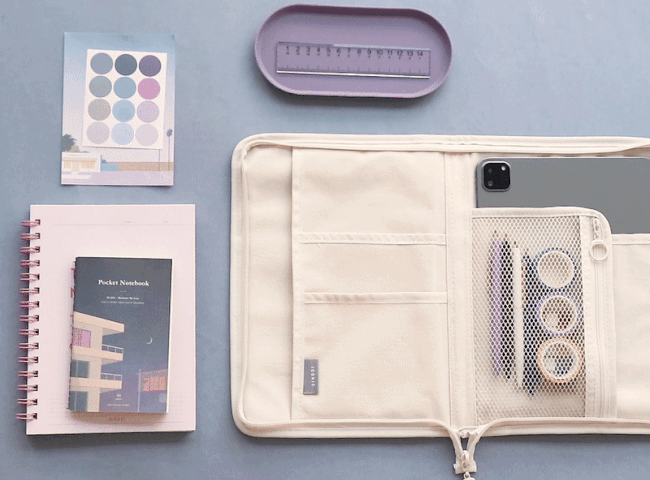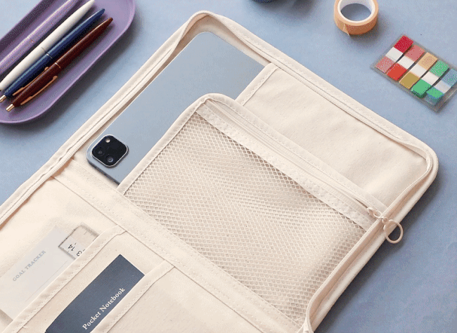 * The book pouch contains reinforcing material that is excellent for organizing tablet PCs and various stationery, so it can protect your belongings from external impacts!