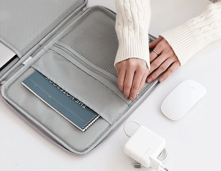 Navigating through a bustling cafe in downtown Chicago, I found solace knowing my beloved MacBook is cradled securely. Its pouch adds an elegance while effortlessly housing essentials like pens and notebooks — true delight!
