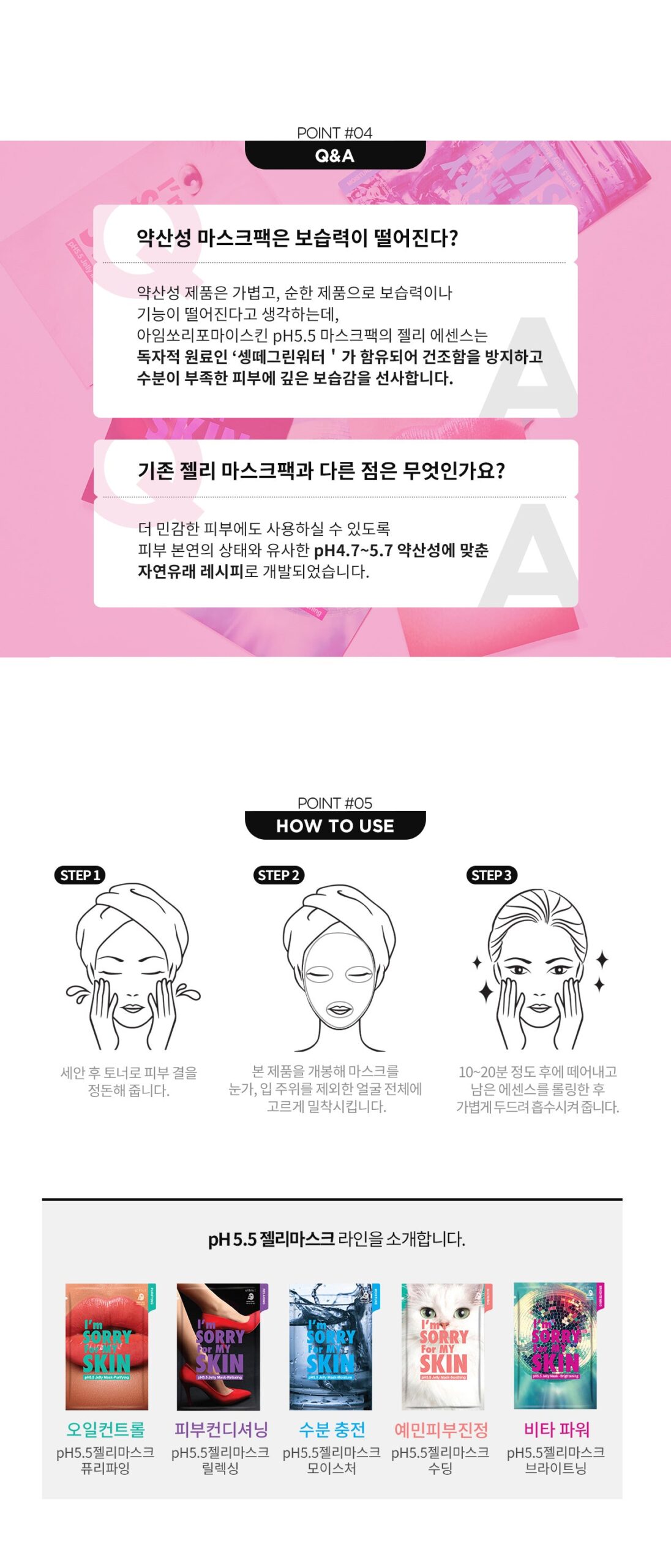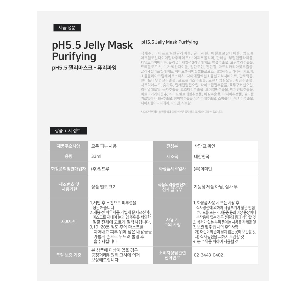 ‘I’m Sorry For My Skin pH 5.5 Jelly Mask – Purifying’ is designed to harmonize the oil and water balance of your skin. This specialized mask soothes irritated skin, restoring it to a naturally healthy state.