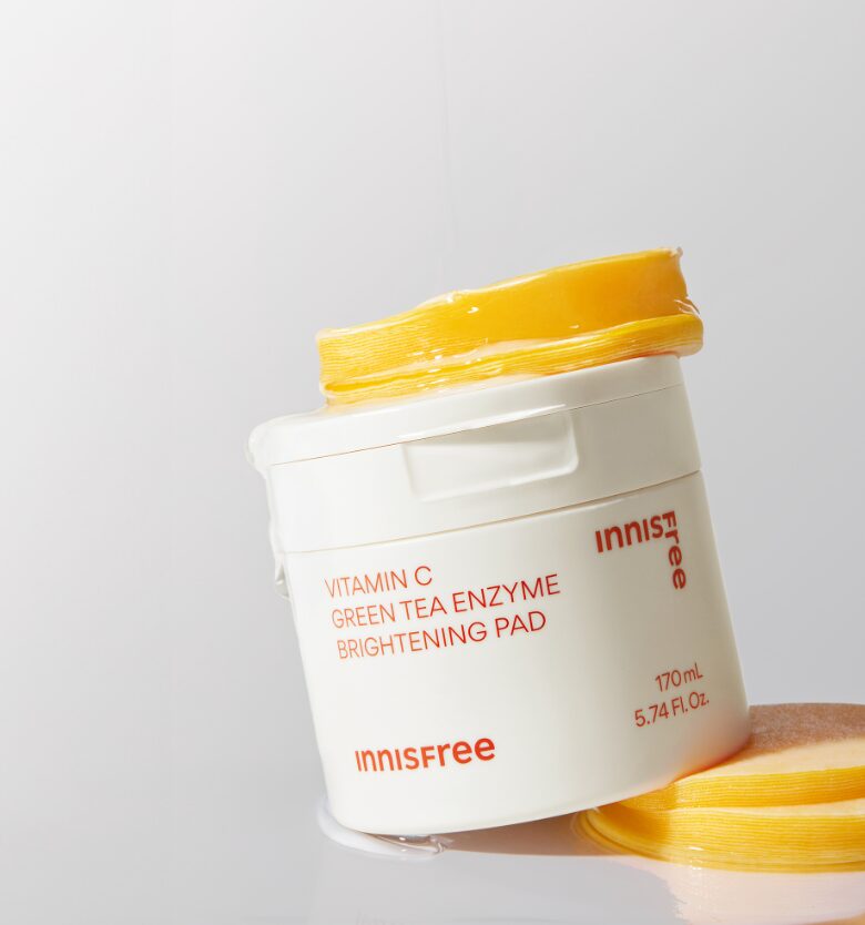 Incorporate the Innisfree Vitamin C Green Tea Enzyme Brightening Pad into your skincare routine for a brighter, more radiant complexion.