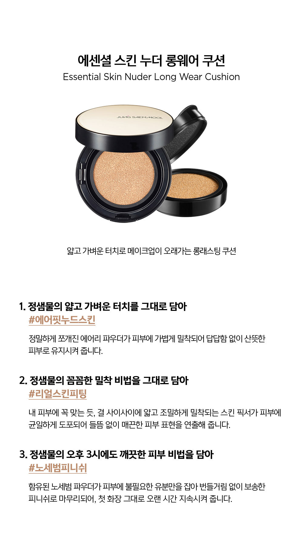 Discover the transformative power of JUNGSAEMMOOL Essential Skin Nuder Long Wear Cushion, expertly designed to provide a long-lasting, thin layer of coverage.