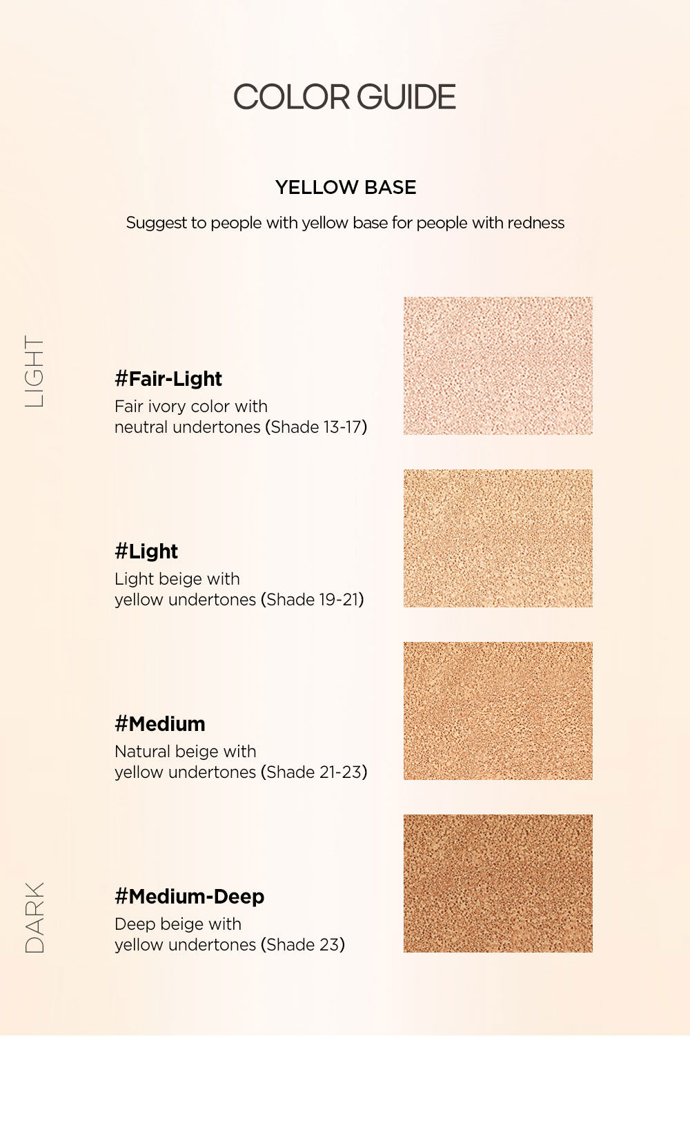 - #Fair-Light: Fair ivory color with neutral undertones (Shade 13-17).