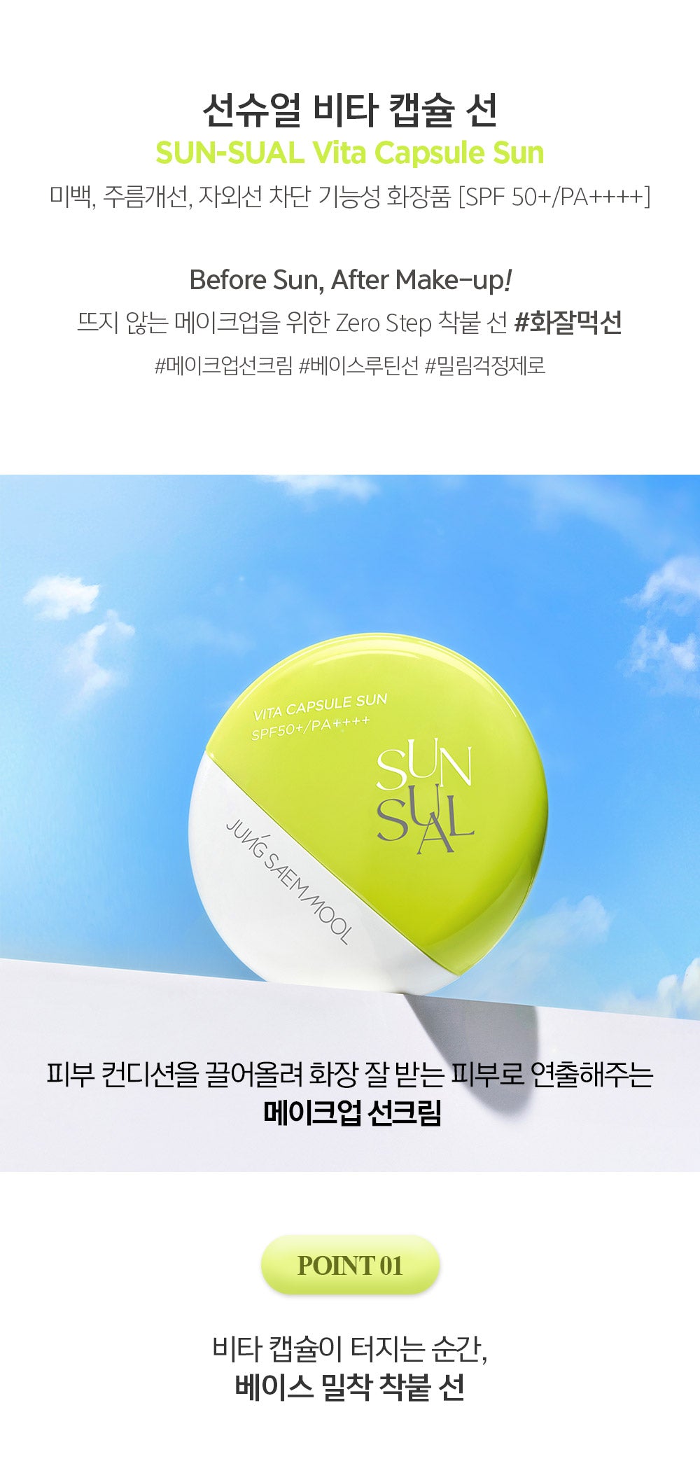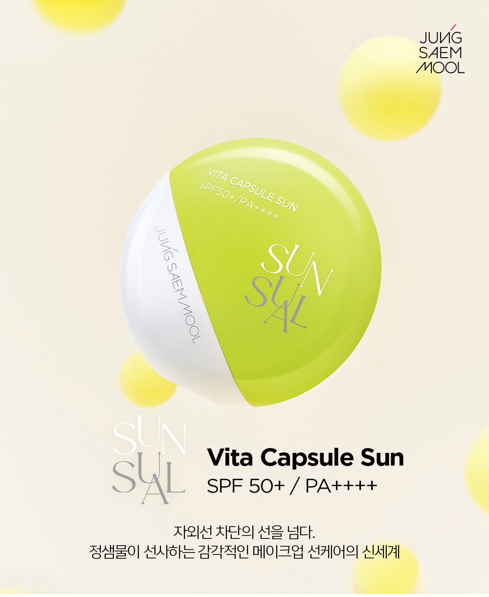 JUNGSAEMMOOL Sun-sual Vita Capsule Sun is a testament to our commitment to providing high-quality, environmentally conscious skincare solutions. Enjoy a flawless, protected, and vibrant complexion with every application.