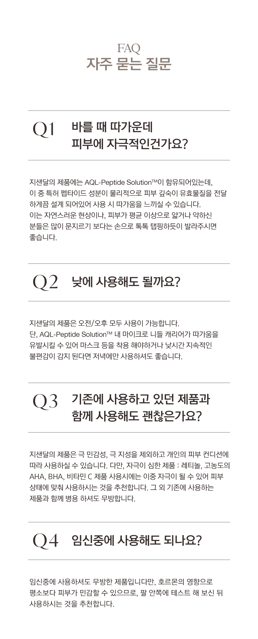Jysandal’s AQL-Peptide Solution™ contains patented peptides that deeply penetrate the skin. The tingling sensation is a normal reaction as the active ingredients work on your skin. If you have sensitive skin, apply with a gentle tapping motion instead of rubbing.