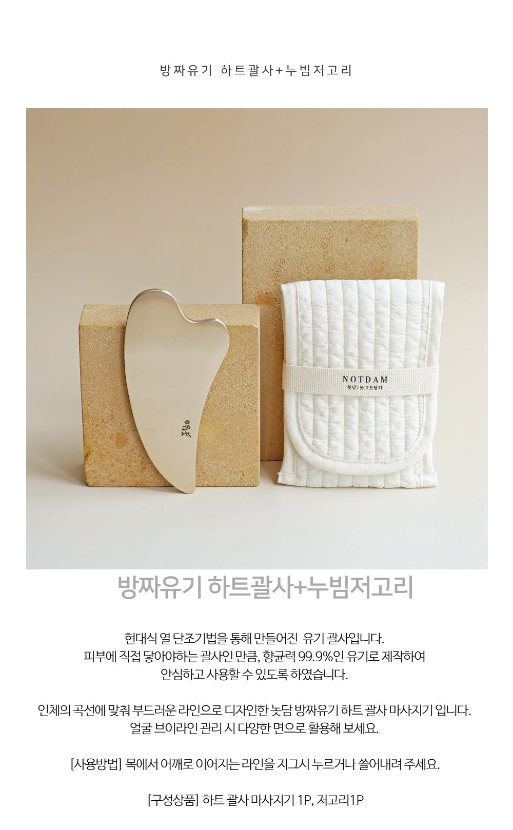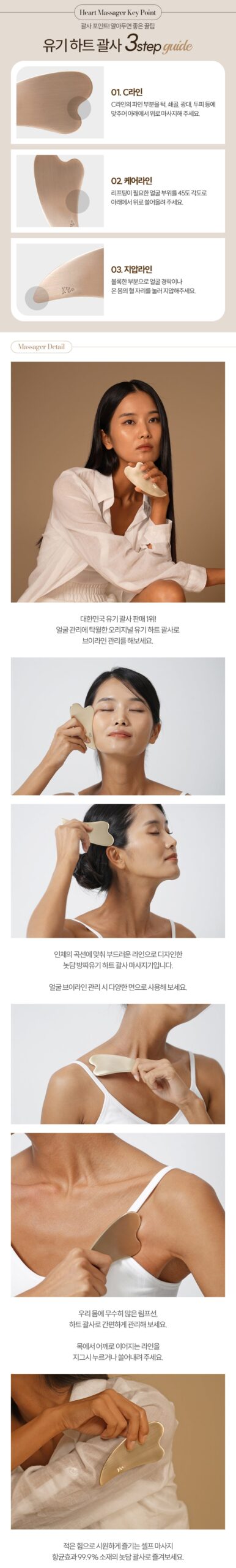 The Yugi Heart Gua Sha is a premium Korean facial massage tool crafted using a modern hot forging technique. Made from Bangjja Yugi—a traditional Korean alloy of 78% copper and 22% tin—it boasts natural antibacterial properties, making it safe for direct skin contact.